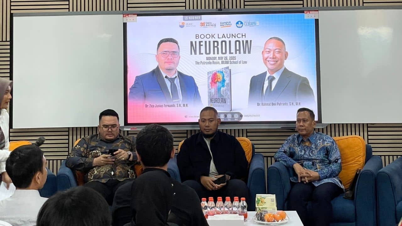 Jakarta Selatan, 26 Mei 2025 — Sebuah kontribusi baru dalam ranah pemikiran hukum Indonesia resmi diluncurkan melalui buku berjudul “NEUROLAW”, hasil kolaborasi dua akademisi, Dr. Zico Junius Fernando, S.H., M.H. dan Dr. Rahmat Dwi Putranto, S.H., M.H. Buku ini diluncurkan secara resmi pada acara yang diselenggarakan di The Putranto Room, IBLAM School of Law (Main Campus), 26 Mei 2025, dengan dihadiri oleh kalangan akademisi, praktisi hukum, pejabat pemerintah, media hukum, serta mahasiswa/i.